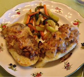 Rellenamos las patatas con esta mezcla y las ponemos en una bandeja de horno. Echamos por encima la nata restante y lo metemos al horno frío a 225º durante 25 minutos. Pasado este tiempo las sacamos del horno y las servimos bien calientes, acompañadas con unas verduras salteadas o con una ensalada de lechuga.