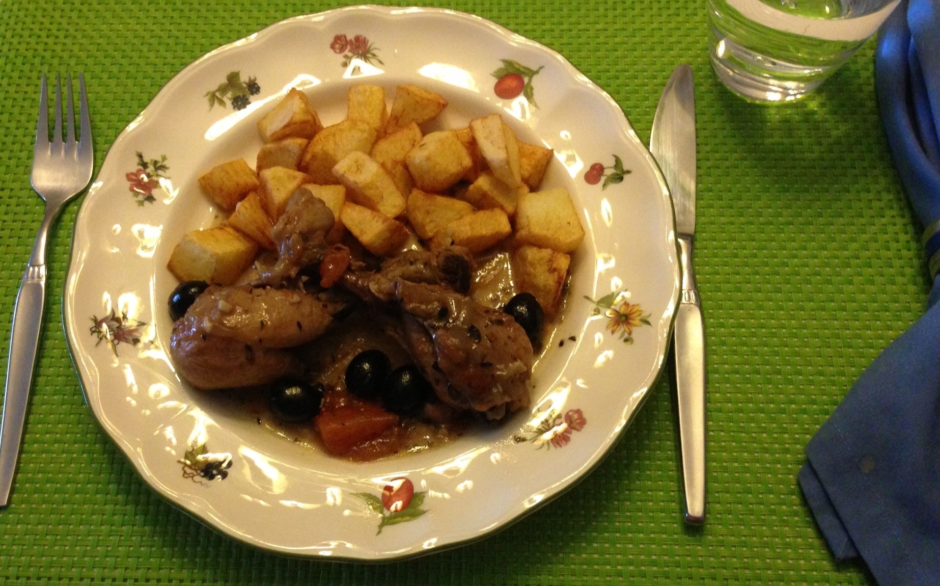 Hoy lo vamos a preparar con aceitunas negras y lo vamos a acompañar de patatas fritas o si prefieres puedes sustituir las patatas por una ensalada y tendrás un plato completo y nutritivo. Espero que os guste.