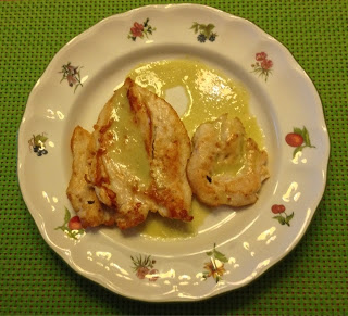 Doramos las pechugas de pollo en una sartén con un poco de aceite (2 ó 3 minutos por cada lado) y las sazonamos.