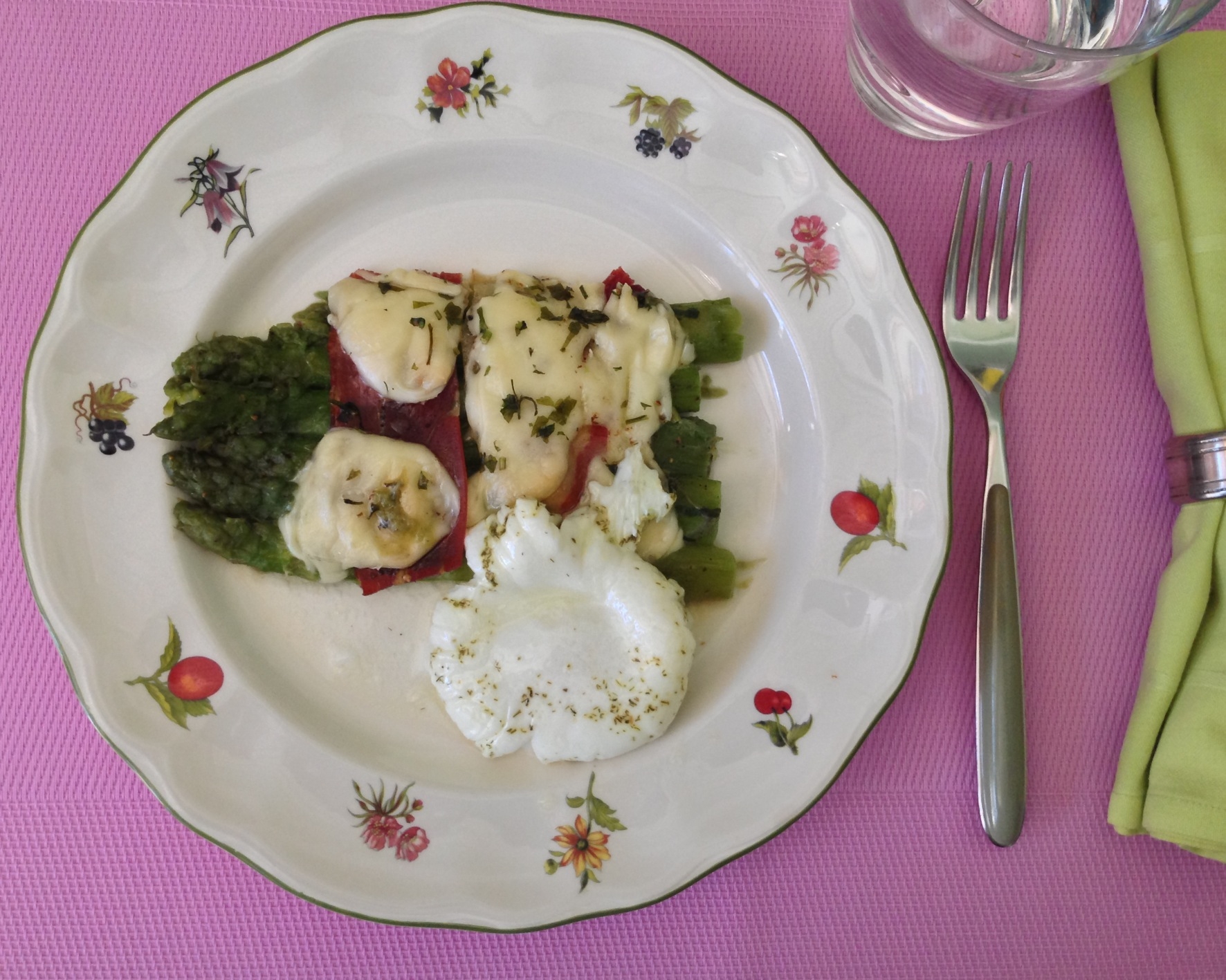 Es un plato sencillo y fácil, que nos aporta las proteínas del huevo, el queso y el jamón y las vitaminas de los espárragos. Los espárragos se encuentran entre los alimentos bajos en calorías, ya que 100 gr de este alimento tan solo contienen 20 kcal. Son ricos en fibra, vitamina A, B12 y hierro.