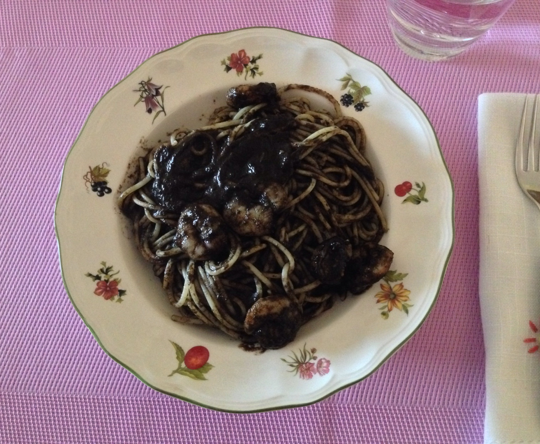 Hoy vamos a preparar pasta, unos espaguetis con gambas y salsa negra. Deliciosos.
