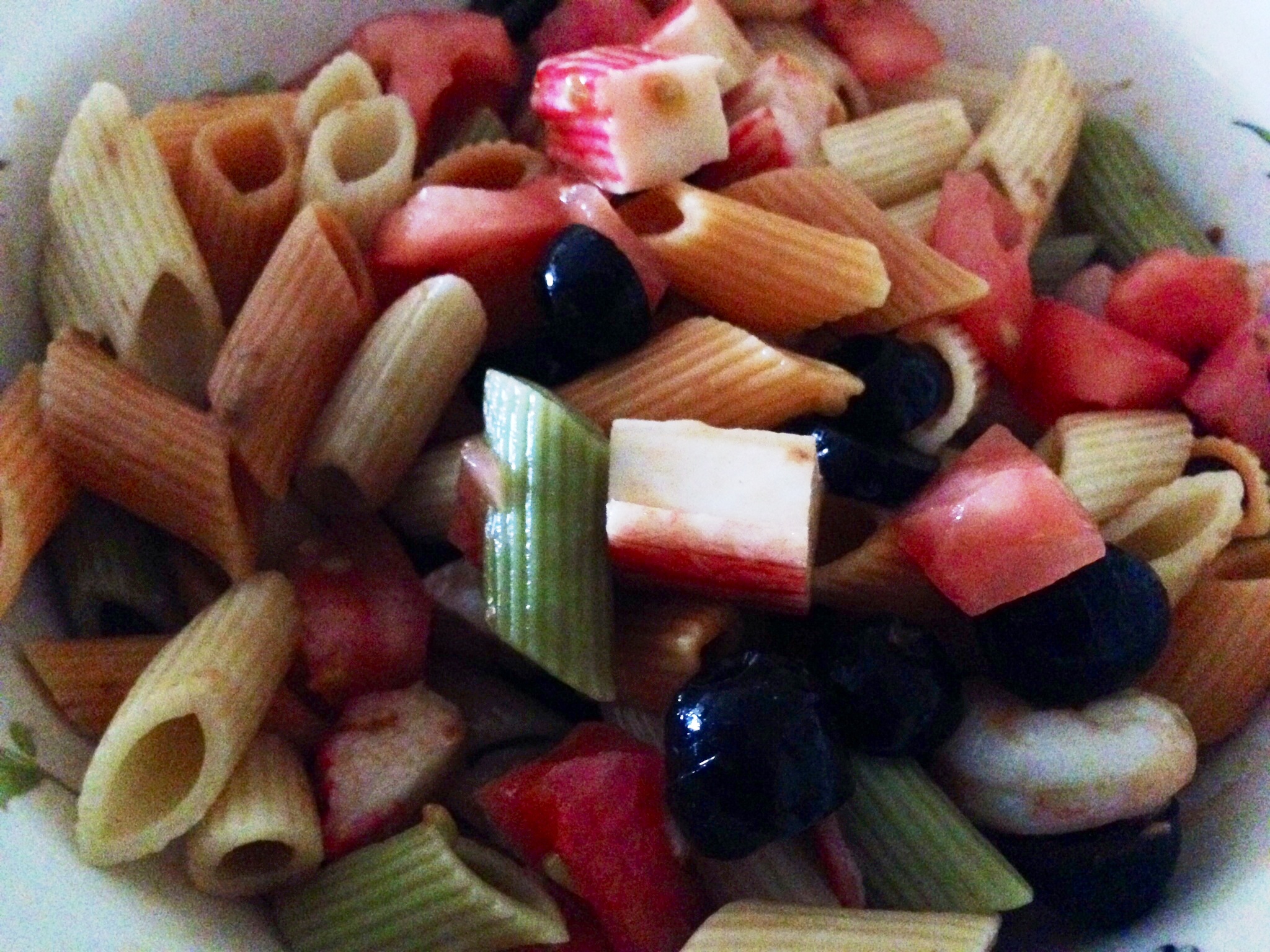 Ensalada de pasta, gambas y surimi