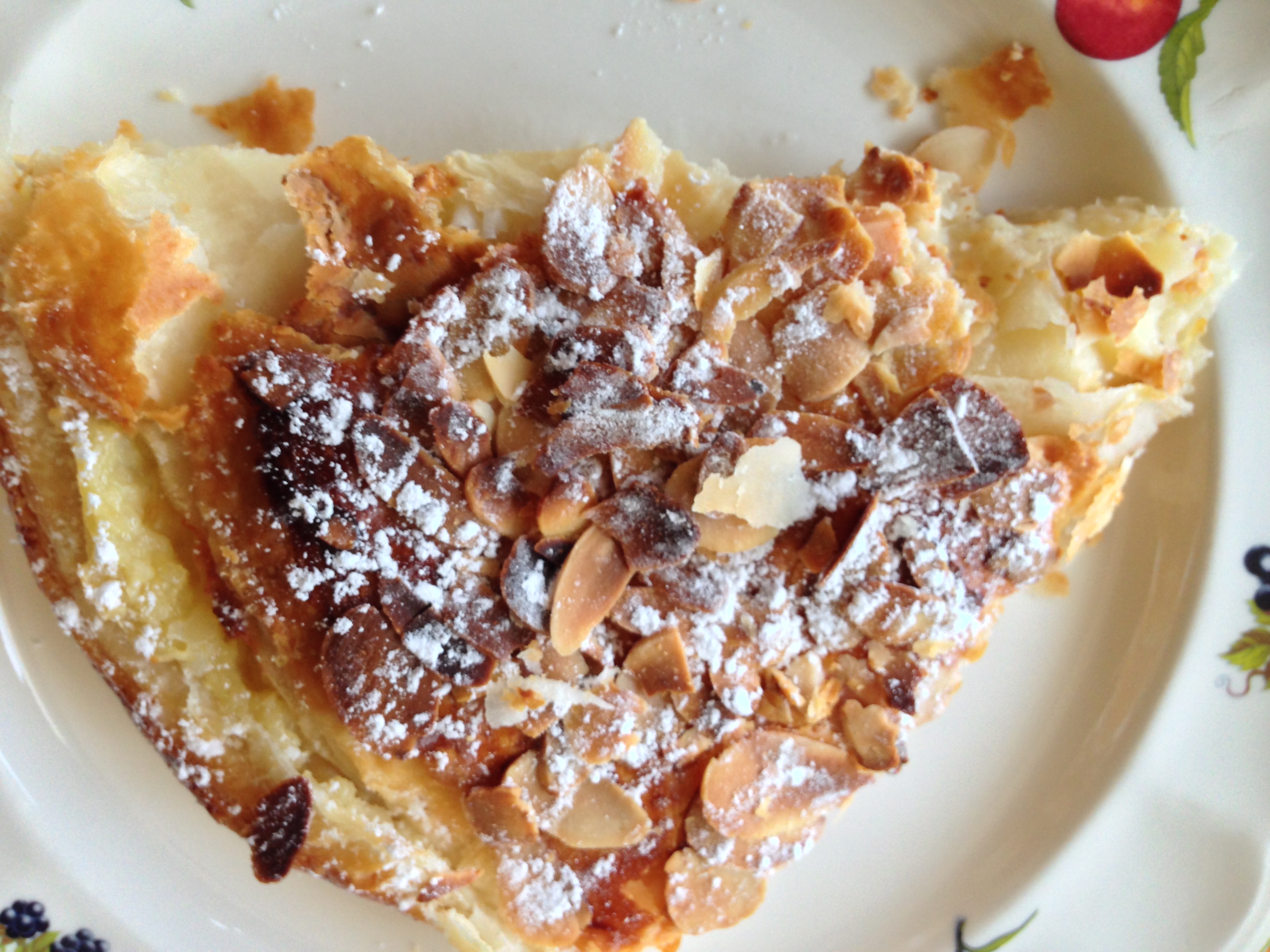 Pintamos la superficie con un poco de huevo batido y espolvoreamos con las almendras laminadas.