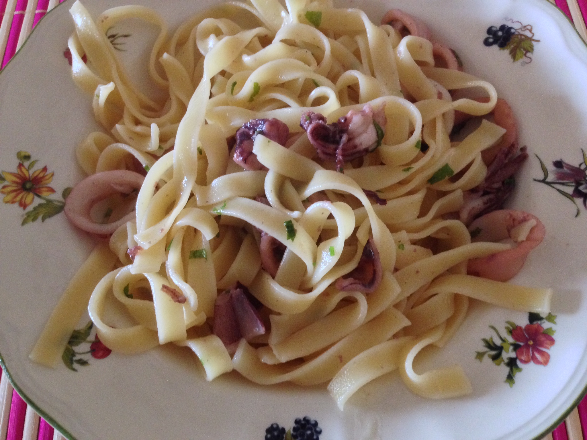 Una receta sencilla, fácil de preparar y deliciosa. Pasta, calamares, un punto picante y a disfrutar!!!! Espero que os guste.